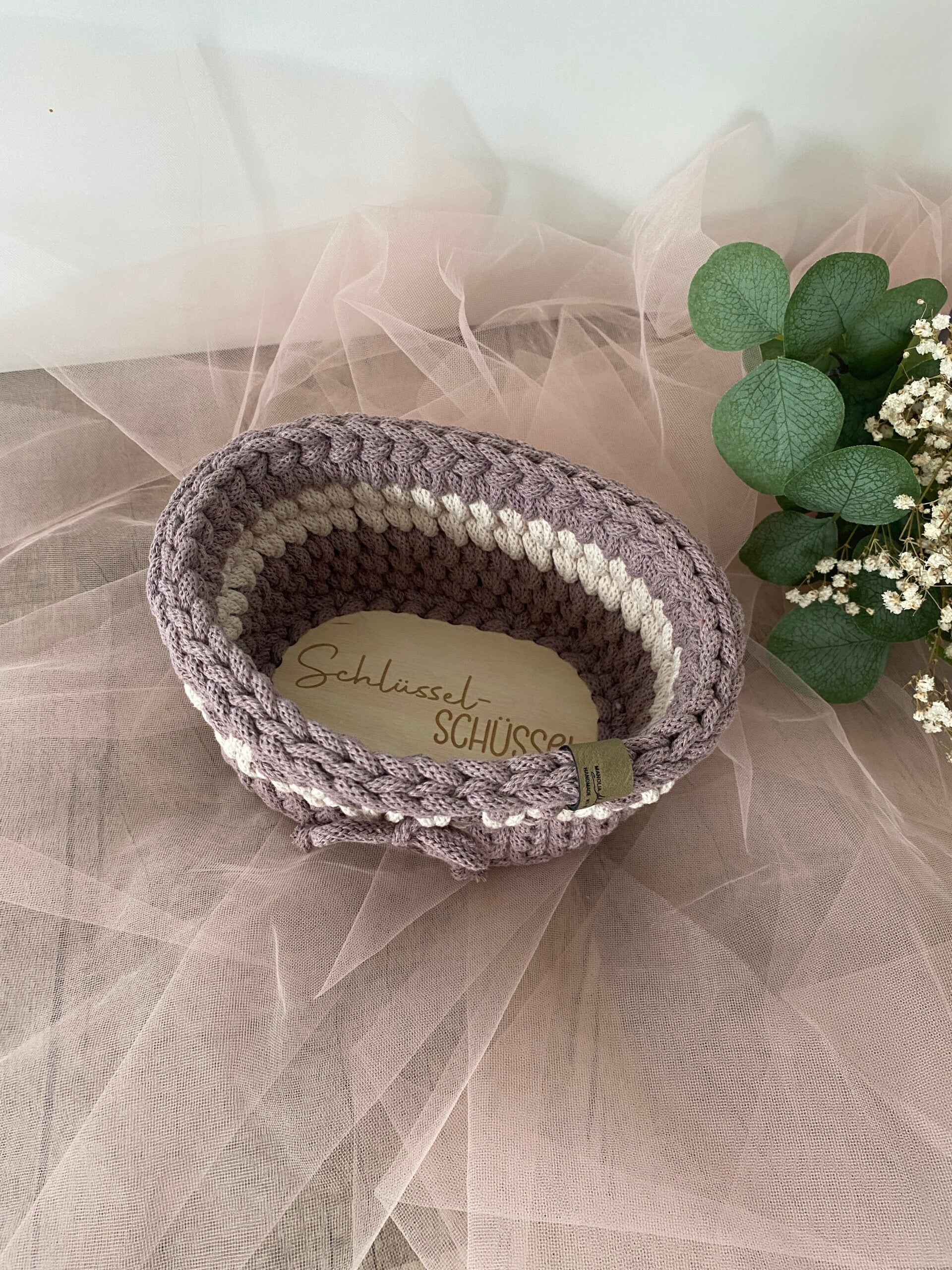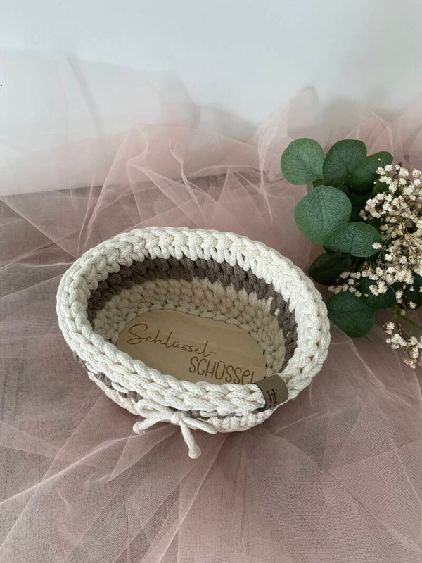 🤍 Neues Lieblingsplätzchen für deine Schlüssel & Co, gehäkelte Schlüsselschale mit Holzboden
