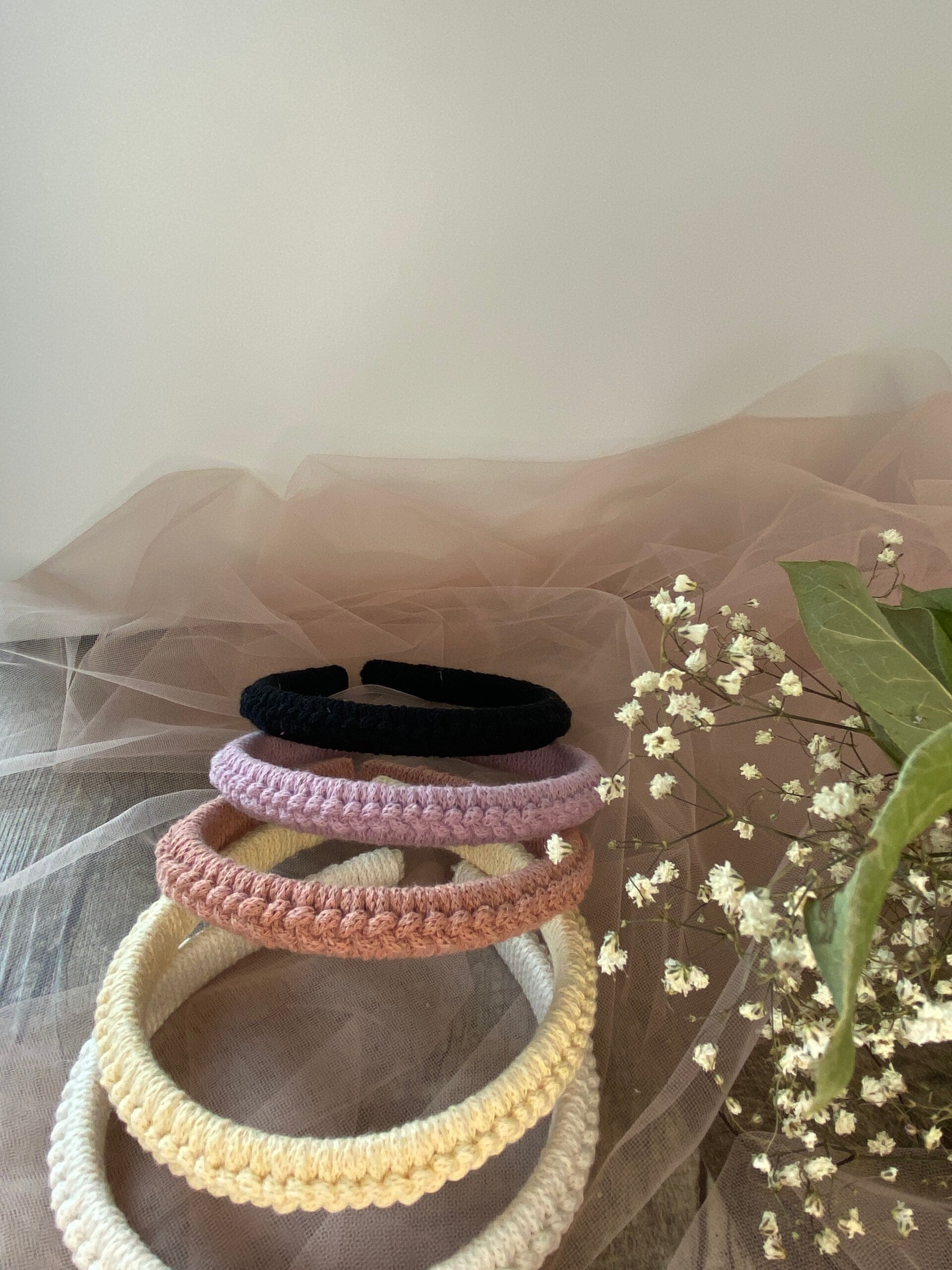Die Haarreifen gibt’s in allen Farben, die das Bobbiny-Garn-Sortiment bietet – von natürlichen Tönen bis hin zu fröhlichen Pastellfarben oder kräftigen Statement-Farben. Such dir deine Lieblingsfarbe aus!