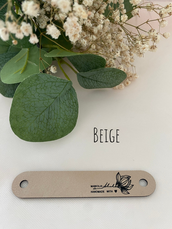 Unsere hochwertigen Kunstleder-Labels mit Gravur im Wunschdesign verleihen jedem DIY-Projekt den letzten liebevollen Schliff.