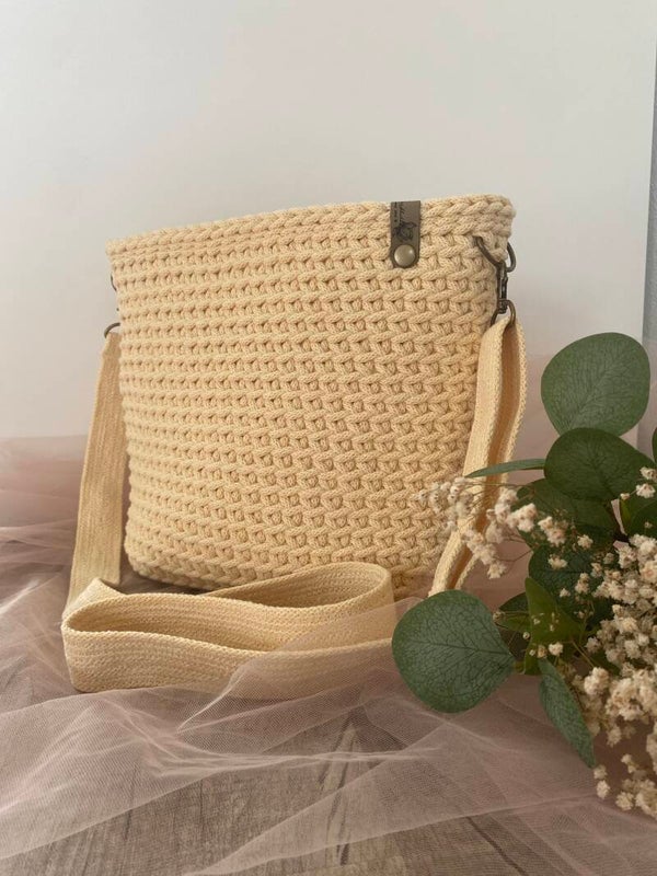 Das gehäkelte Design begeistert mit einem strukturierten feinen Muster das an eine gedrehte Kordel erinnert. Diese besondere Maschenart sorgt für ein stilvolles Volumen und einen festen, aber flexiblen Griff – perfekt für eine Tasche, die mit dir durchs Leben tanzt.