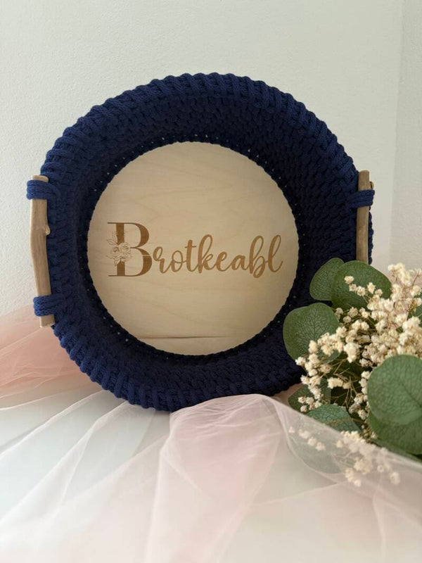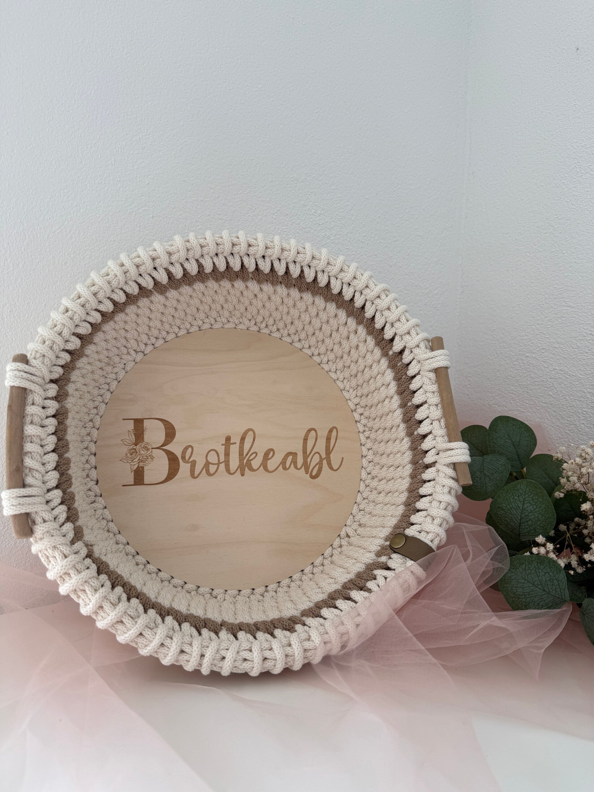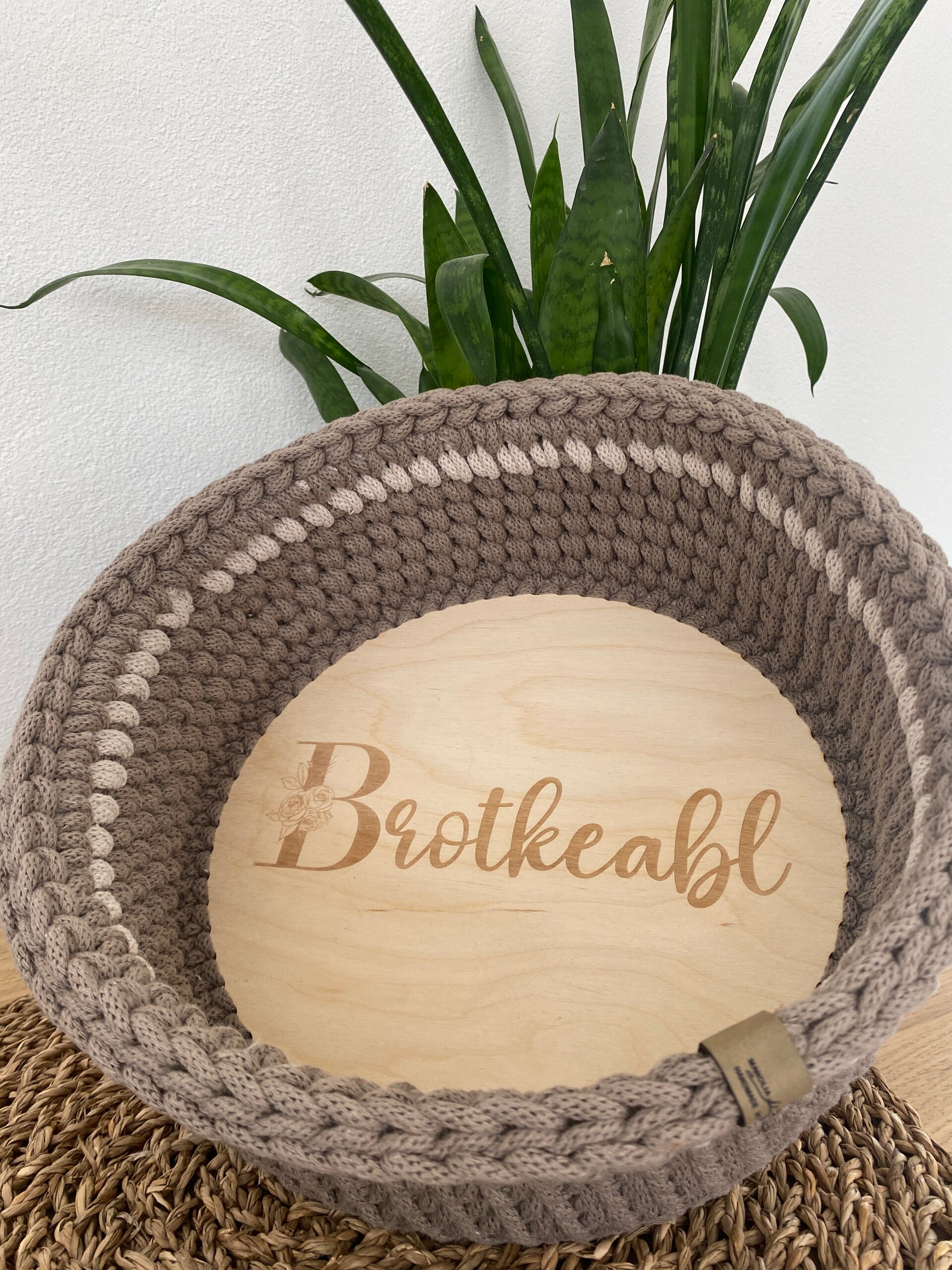 🥐 Handgehäkeltes Brotkeabl mit graviertem Holzboden 🥐