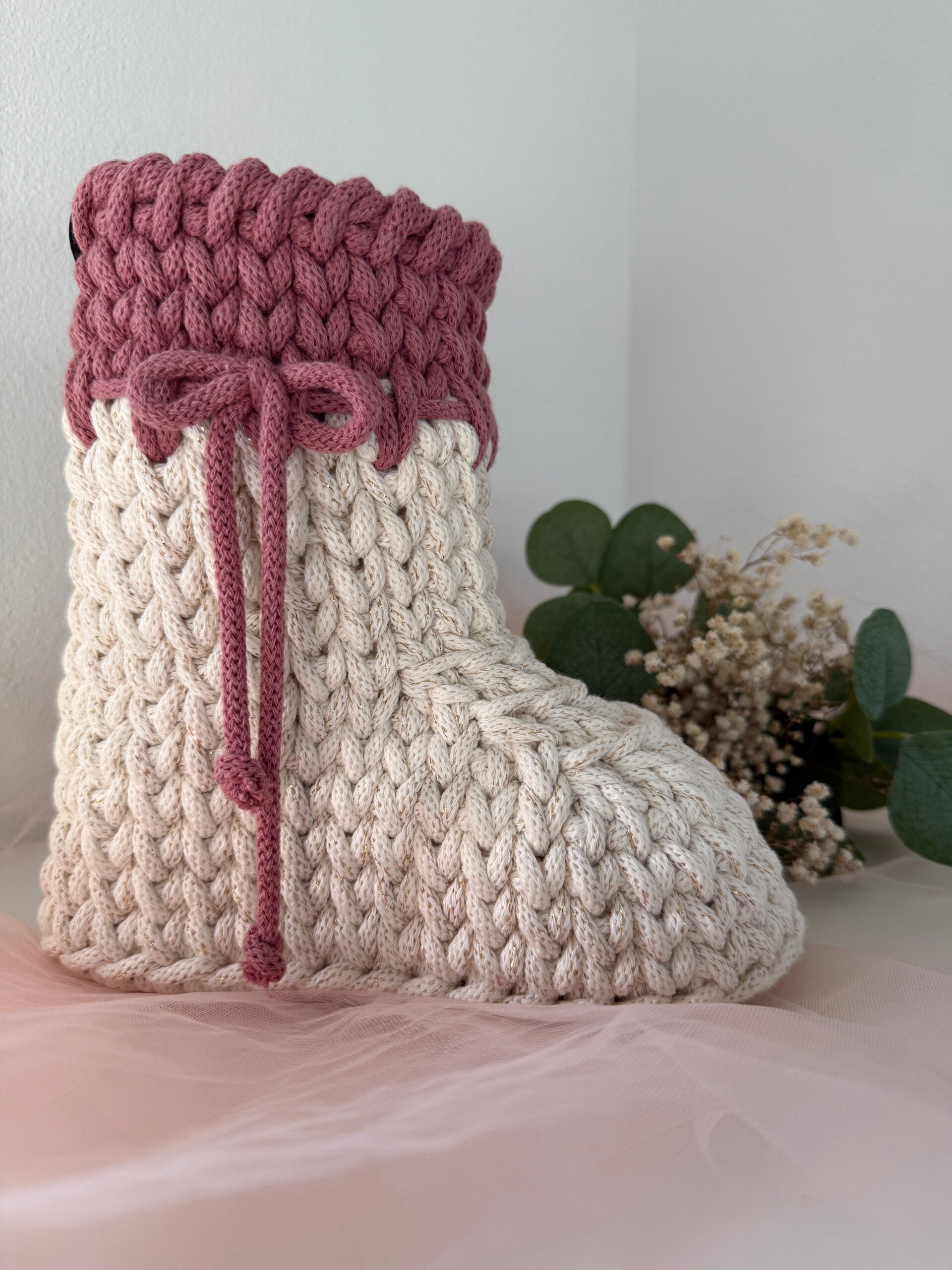 Ob als liebevolle Geschenkverpackung, Dekoration für den Kamin oder das Fensterbrett, oder persönlicher Hingucker am Nikolaustag – dieser Stiefel zieht alle Blicke auf sich und bringt sofort festliche Stimmung in jeden Raum.