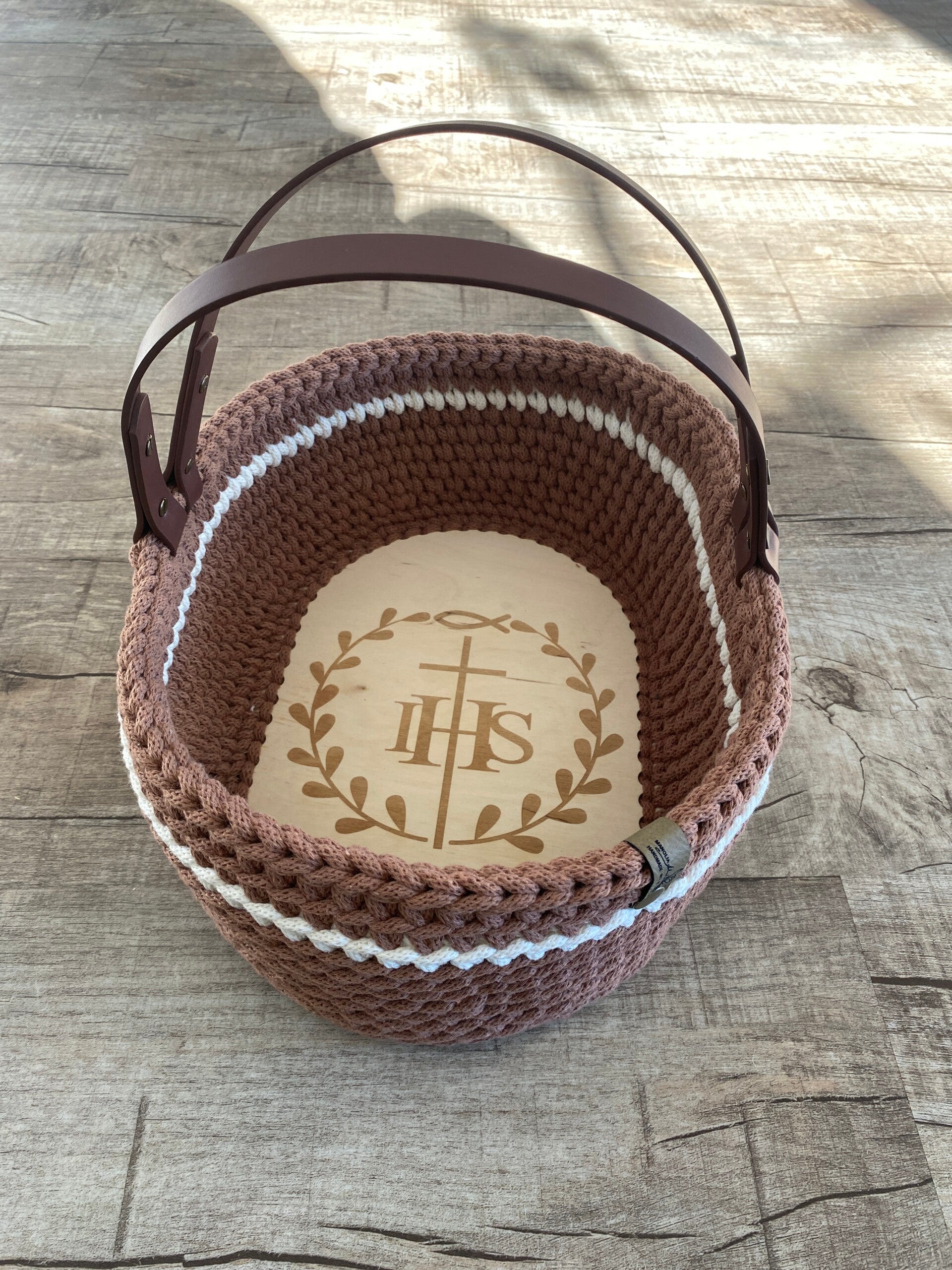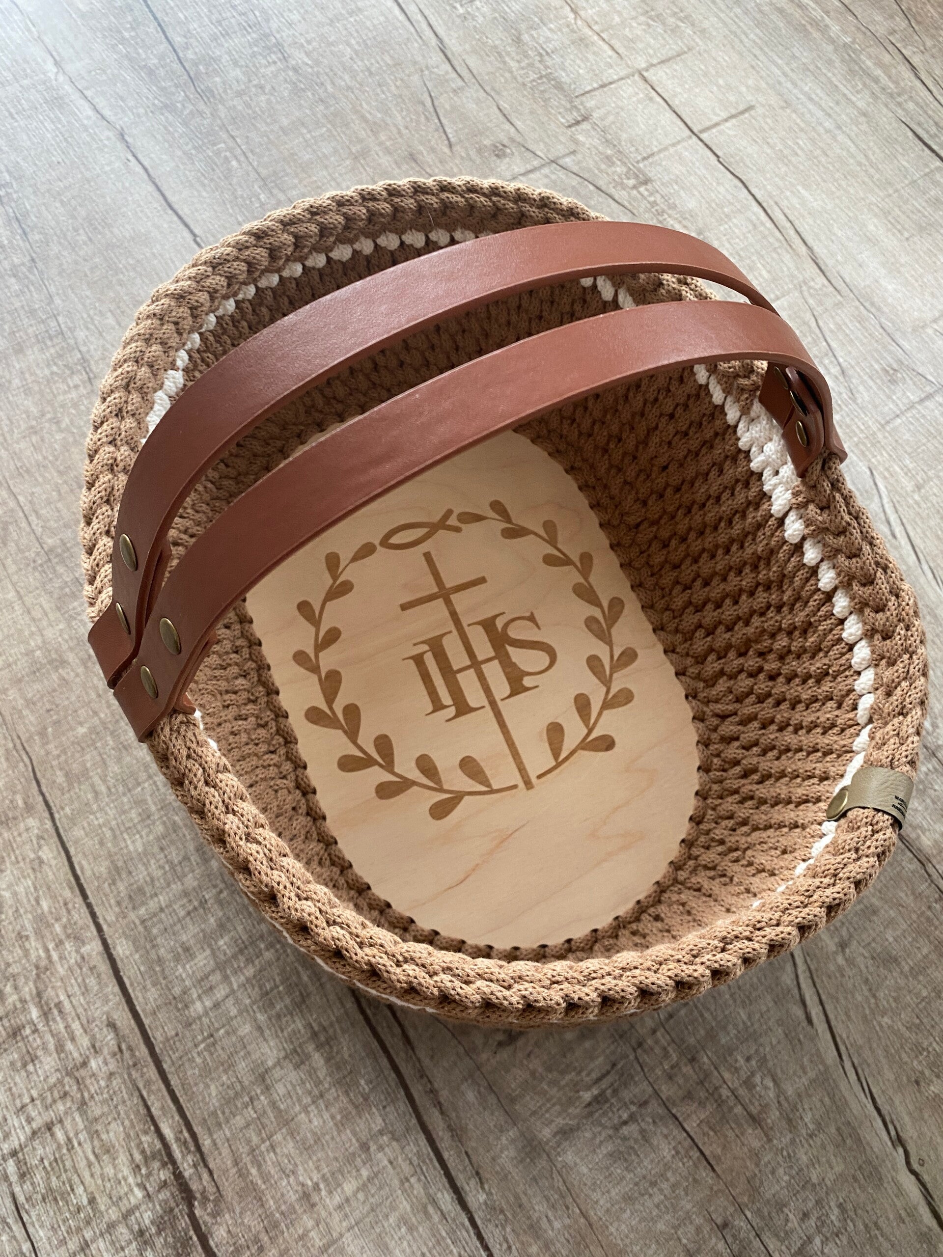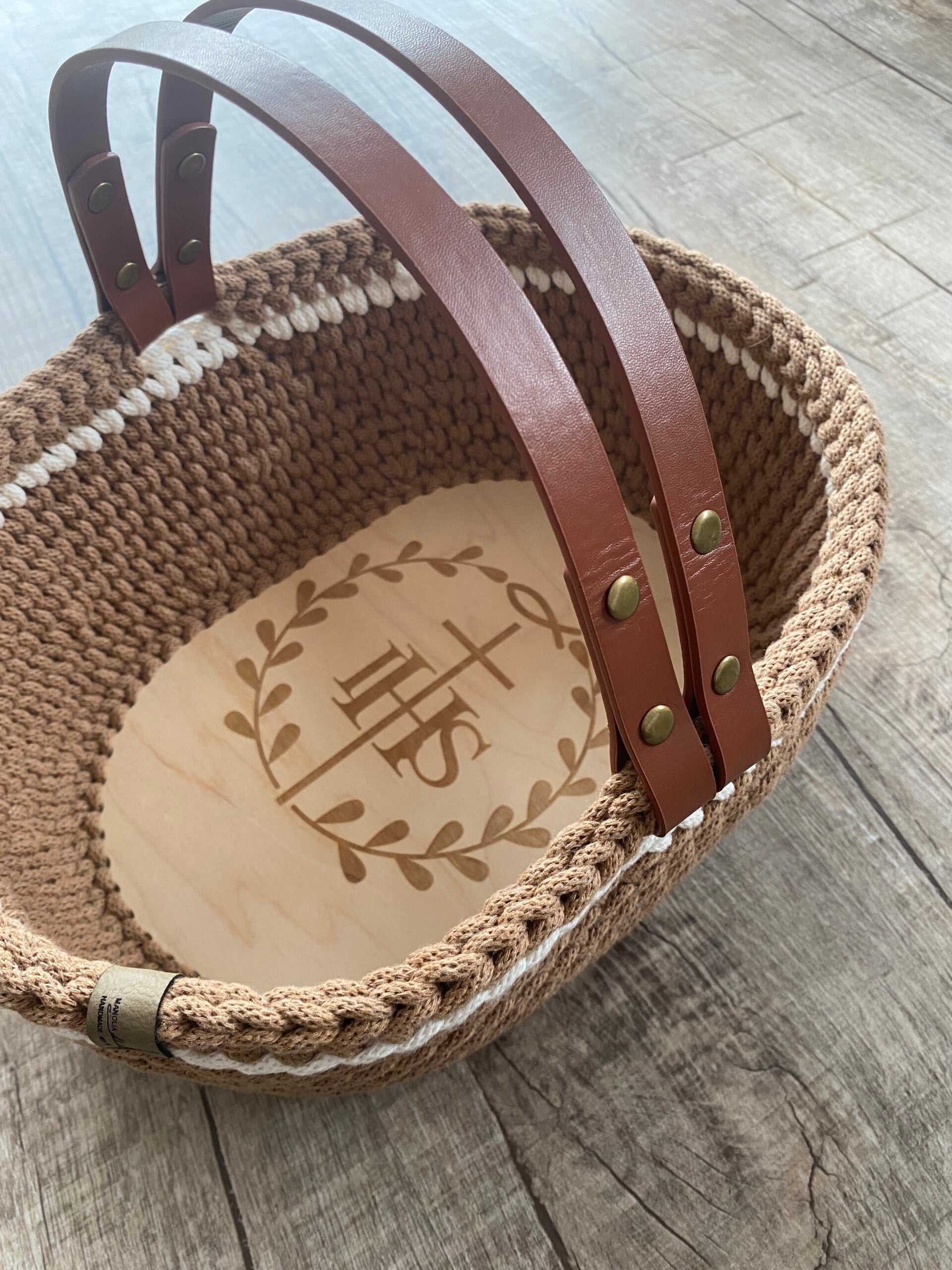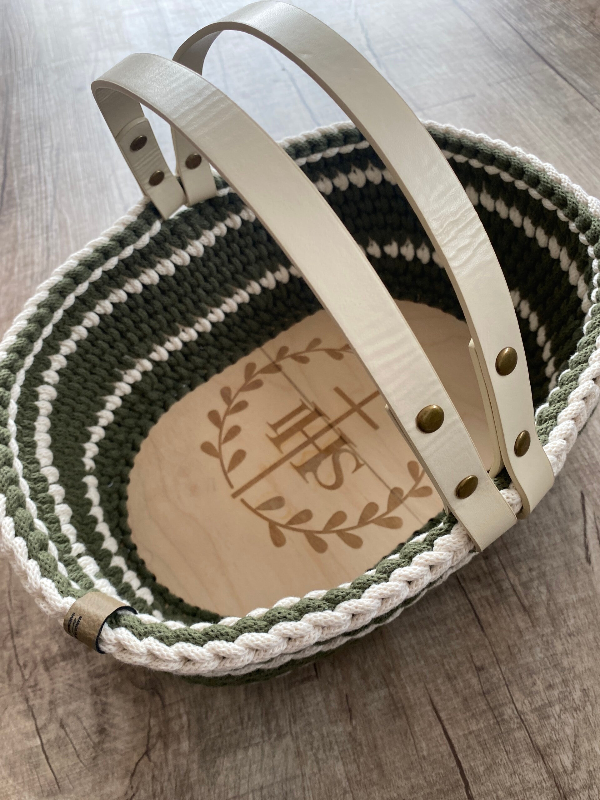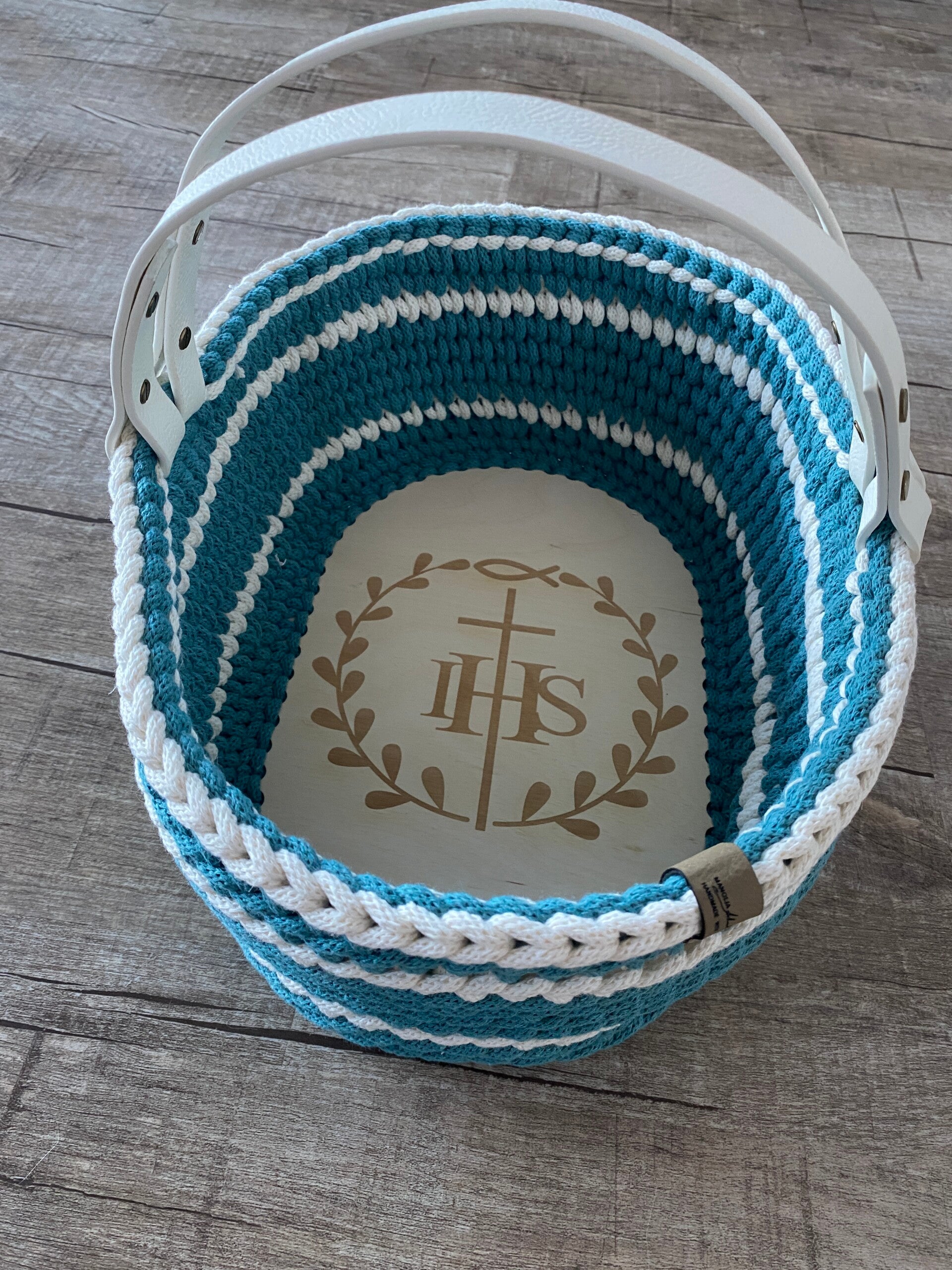 Das Körbchen wird mit einer edlen Gravur „IHS“ verziert, einem traditionellen christlichen Symbol, das für „Jesus Hominum Salvator“ steht – „Jesus, der Retter der Menschen“. Es symbolisiert die göttliche Präsenz und wird in der Kirche besonders bei der Feier der Eucharistie verwendet. 🙏