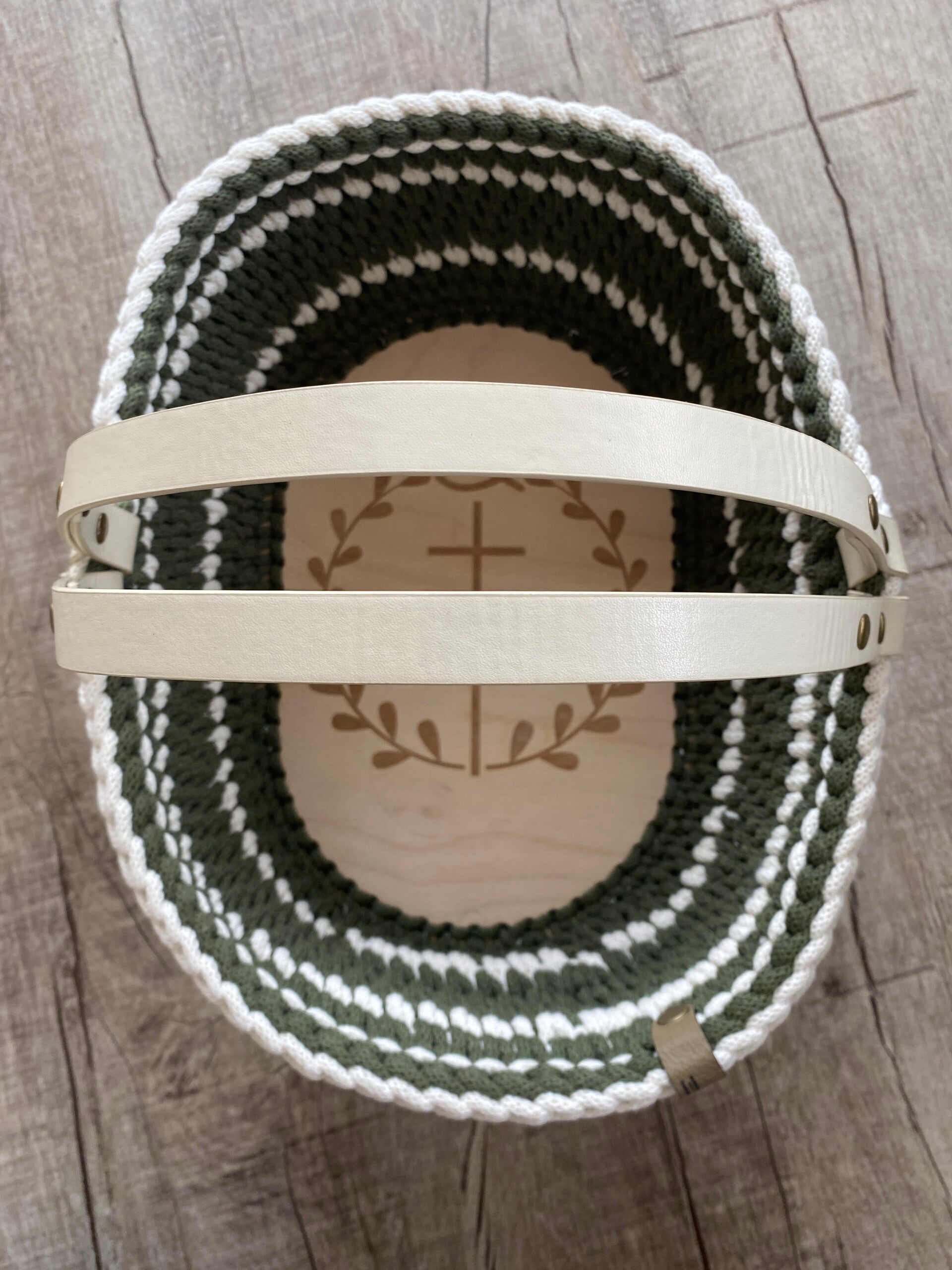 🤍 Bilder sind Beispielbilder, durch das Naturprodukt Holz variiert jeder Korbboden in seiner Maserung und auch das Häkelbild kann Unterschiede aufweisen.