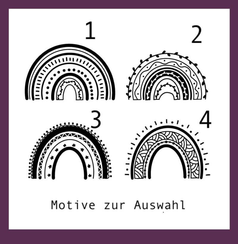✨ Du möchtest ein Tiermotiv oder einen Regenbogen? Kein Problem! In den Produktfotos findest du die verfügbaren Designs – einfach Wunschmotiv bei der Bestellung angeben.